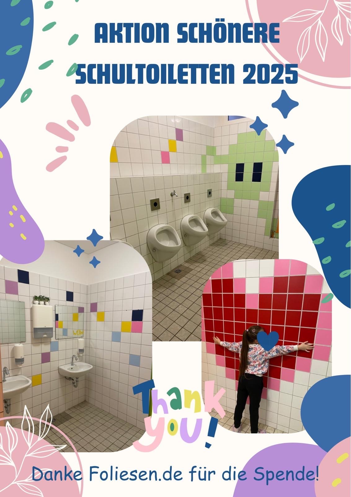 Ein ganz besonderer Dank geht an foliesen.de, die uns großzügig bunte, hochwertige Fliesenfolien gespendet haben. Dadurch erstrahlen die Toiletten jetzt in fröhlichen Farben – ein echtes Highlight!